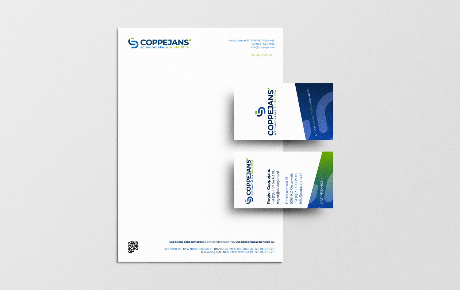 Totale re-branding voor Coppejans Schoonmakers uit Oisterwijk. De vraag was om de duurzame visie van het bedrijf in alle uitingen naar voren te laten komen.